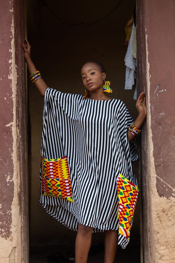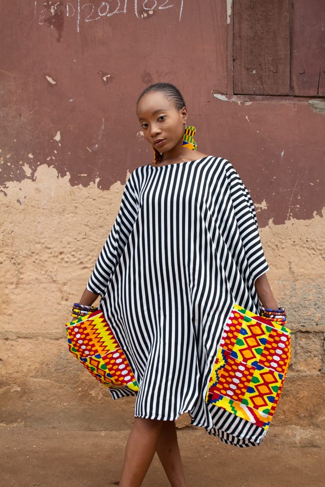The ANAISHE Black & White Stripes Oversized Blouse with BIG Ankara BIG pockets